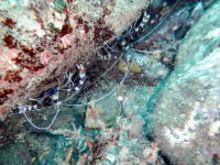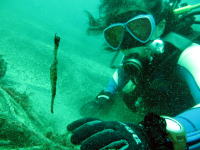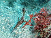 | 今日も江の浦へ。穏やかなコンディションでノンビリと潜れました。人気のカミソリウオのペアはちょっと移動してましたが、見れました。その他、トラウツボ、ツユベラ幼魚、ノコギリヨウジ、ハタタテダイなどが見れました。 |