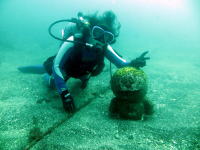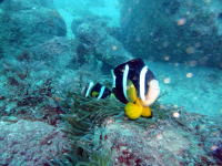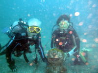 | 今日も福浦へ。心配された空模様でしたが、なんとか曇り空の下でのダイビングが出来ました。透明度も陸と一緒でスッキリした感じではなかったですが、すぐ回復すると思いますよ〜〜。あとは、南方系のお魚がどんどん増えると良いですね〜〜。 |