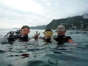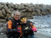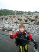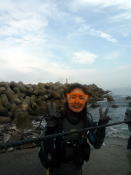 早く潜って早く飲みたいMさん (笑)あっ、Kちゃんは腰痛で 丘番です(笑) |