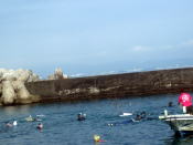 群れに手を振ってもね〜(笑) | 港ではサザエ採り? のイベントが |