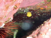 | 今日は、久々に宇佐美へ。潜降してすぐにアカカマスの群れに遭遇しました。水中はどちらかというと、浅場のが透明度が良い感じでした。その他、巨大ヒラメ、オキゴンベ、ミナミハコフグの幼魚などが見れました。 |