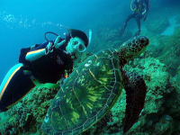 | ハワイツアー初日は、ワイキキ沖へ。コンディション的に決してベストでは無かったのですが、ハワイアンブルーの海・レックダイビングを堪能しました。ビッグサイズのカメ、マダラトビエイも登場してみんな、大喜びでした〜〜〜 |