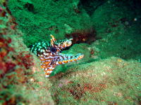 | 今日は、ファンダイブで江の浦へ。水面、若干はパシャついてましたが、水中は穏やかで透明度もまずまずでした。珍しく、巨大イシダイが登場せず寂しかったですが、稚魚、幼魚が多くて賑やかな感じです。カマスの群れ、アカハタ、オオモンハタなどが見れました。 |