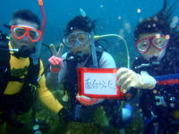 | 中止続きで、久々の海でした。コンディションは波ウネリなく、良好でノンビリとフィッシュウォッチングが楽しめました。でも、台風前に居たものが結構、消えてる・・・・新しいものも現れるかな・・・・・期待しよう〜(笑)そして今日はアフターダイブはバーベキューを楽しみました。美味かったな〜(笑) |