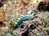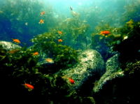 | 今日は江の浦へ。ずっ〜〜〜〜〜〜とクローズが続いてましたが、やっと潜れました(笑)まだ、ウネリは若干、有るものの普通に潜れました。新たに指の爪サイズのクマノミ&ミツボシが登場しましたよ。お魚も増えて水中は賑やかです。 |