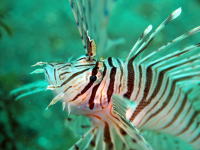 | 今日は江の浦へ。透明度、だいぶ回復してきましたよ。エントリーしてすぐ、アオリイカの子供の群れが見れます。その他、ミノカサゴの幼魚、モンツキハギの幼魚、ノコギリヨウジなどが見れました。 |