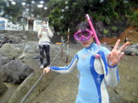 | 今日も江の浦へ。昨日よりは穏やかなコンディションでした。深場に居るガラスハゼはちょっと大きくなってましたね。その他、ミナミハコフグの幼魚、イソギンチャクモエビなどが見れました。天気良く、気持ち良いダイビングでした。ずみ姉、夏休みの良い思い出が出来ましたね〜〜〜 |