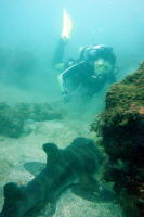 今日は久々に湖のような穏やかな海でした!なのに貸し切り(笑)ノンビリと潜れました。生物的にはウミウサギ、ウミテングなど人気者は健在ですが、今日は何と言っても巨大ネコザメ!しかも2匹!Mさん、大喜びでした。 |