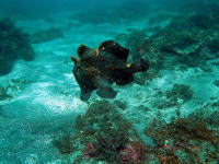 今日は福浦へ。若干、ウネリ有りのコンディションでしたが、特に問題なく潜ることが出来ました。水中はと言うと、もう大当たり!目の前をオオモンカエルが泳いで来たり、軽く1m超えの巨大ネコザメに遭遇したりとNさん、大喜びでした。 |