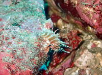 | 今日は福浦へ。天気も良く、海況は穏やか、コンディションは良好でした。水中は潜って居る間、ずっと、キビナゴの群れに当たってる感じでした。透明度も最高でYちゃん、Uちゃん、最高の潜り納めになりましたね。 |
