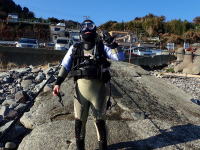 | 今日は江の浦へ。天気良く、まずまずのコンディションでした。透明度はこの時期としてはもう少し欲しい所ですが見どころ満載な感じで面白かったですね。主なところでは可愛いカエルアンコウ3匹、ニシキフウライウオ、ミアミラウミウシなどが見れました。 |