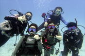 | 吸い込まれそうなブルーです | 沈船前で集合写真です | 『LOVE』って書いて ありますが(笑) |