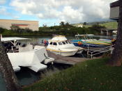 ダイビング2日目は ワイキキ沖へ。 このボートで向かいます |